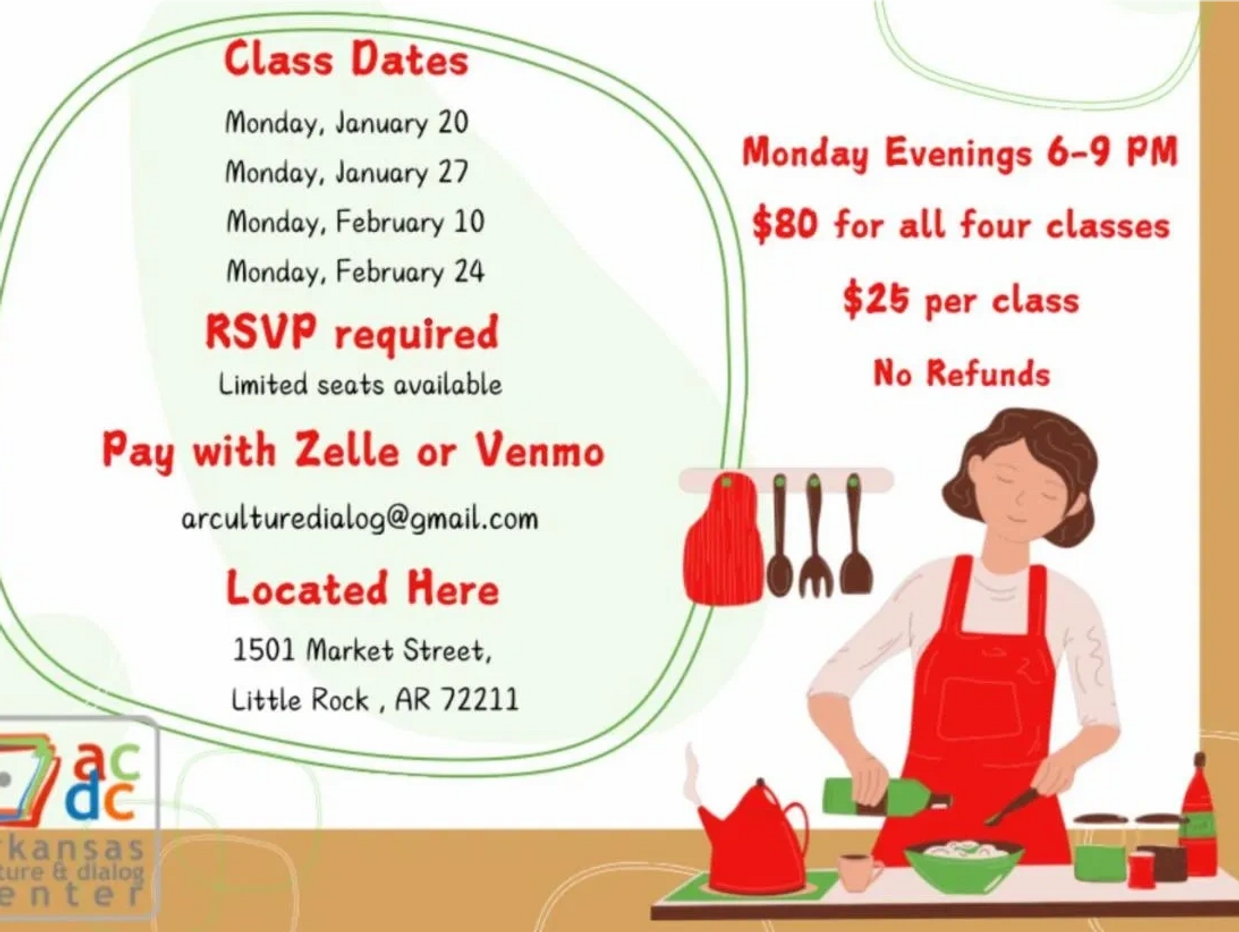 Looking to spice up your cooking skills? Come and join us at the Arkansas Culture & Dialog Center for another delicious session of our Cooking Classes! 👩🍳👨🍳